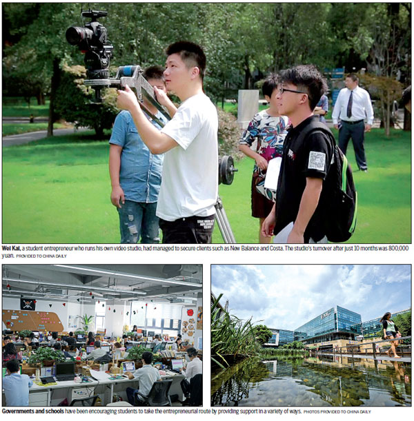 Wei Kai, who graduated from the University of Shanghai for Science and Technology in June 2016, is one of those who have achieved success. His video studio, which was founded during his third year at university and counts major brands like New Balance and Costa among its clients, managed to generate an impressive turnover of 800,000 yuan ($115,125) after less than 10 months.