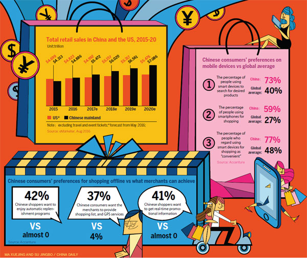 Consultancy Accenture agreed. It found that over three quarters of Chinese shoppers prefer to use mobile devices when they make a purchase, 30 percentage points higher than the global average.