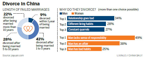 Wang Hui, a researcher at the Shanghai Academy of Social Sciences' Family Research Center, said such prejudice may cause women in difficult relationships to dodge divorce.