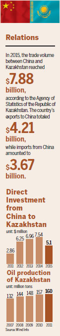 China has been working closely with Kazakhstan for about 20 years, mainly in the energy sector. That cooperation has expanded since the launch of the landmark project, which comprises the Silk Road Economic Belt and the 21st Century Maritime Silk Road.