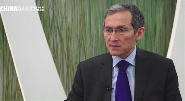 Screenshot shows Djoomart Otorbaev in an interview with chinadaily.com.cn. |