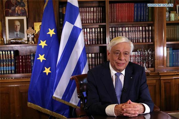 Greek President Prokopis Pavlopoulos is seen at office in Athens, Greece, May 6, 2017. Prokopis Pavlopoulos extended best wishes for success to the upcoming Belt and Road Forum for International Cooperation which will take place in Beijing on May 14-15, in an exclusive statement with Xinhua in Athens. [Photo/Xinhua] |