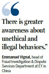 Stamping out "graft" has become a major priority for businesses here in the past two years, according to Emmanuel Vignal, head of Fraud Investigation & Dispute Services Department at EY in China.