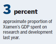 Last year, the amount spent on research and development accounted for more than 3 percent of Xiamen's GDP of 378.5 billion yuan, and Huang said high-tech companies have boosted industrial innovation and boosted the city's relationship with the outside world.