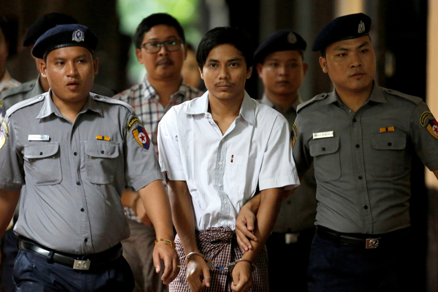 Wa Lone, 32, and Kyaw Soe Oo, 28, were sentenced by the Insein Court for alleged violation of the Official Secrets Act after being held for more than eight months.