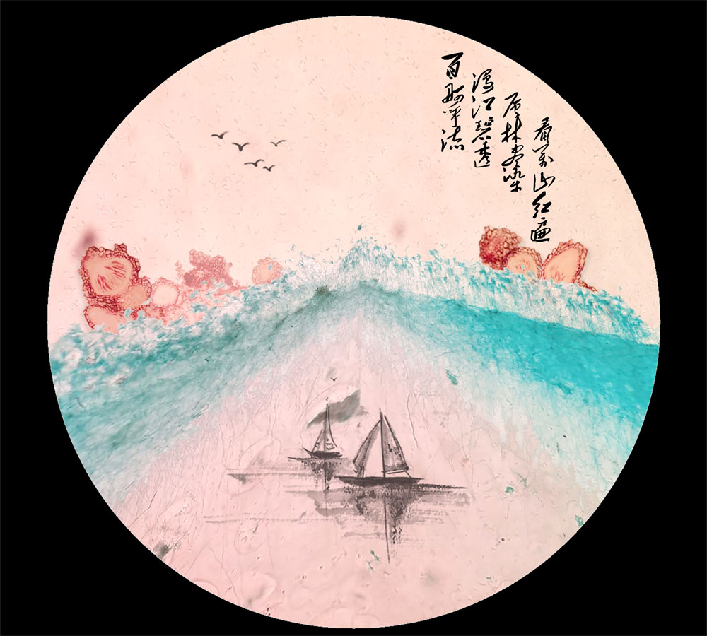 Sailboats glide through the water in this picture created by students at Nanjing Agricultural University’s College of Plant Protection using micro photographs of pathogens. [Photos provided to China Daily]