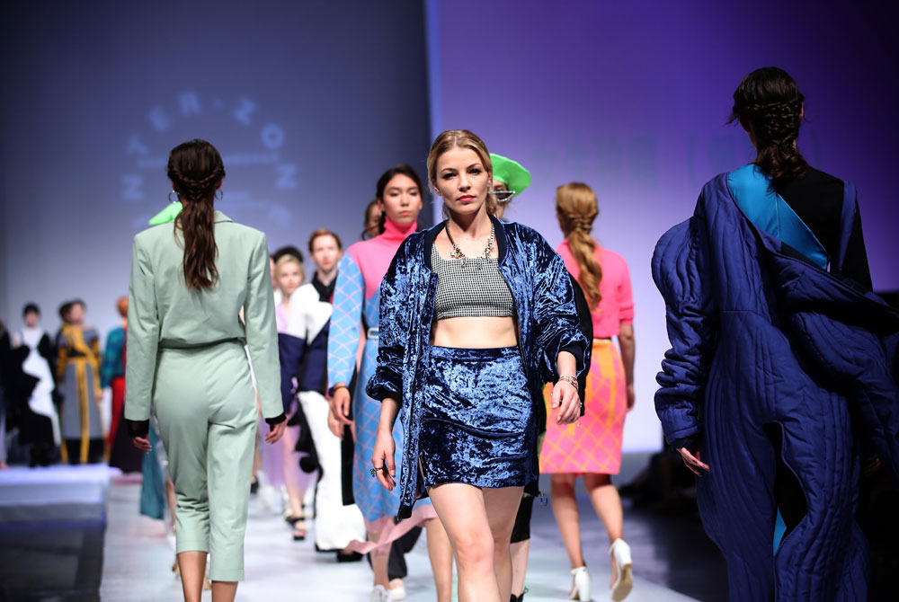 Thirty-seven students from China, Russia, Brazil, Uganda and Ghana stage a runway show at the Beijing Institute of Fashion Technology on Friday to mark their graduation. [Photo by Zou Hong/China Daily]