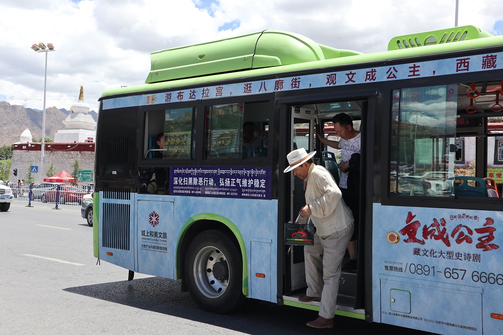 New energy buses are ferrying riders around streets of Lhasa in Southwest China's Tibet autonomous region. [Photo provided to chinadaily.com.cn]