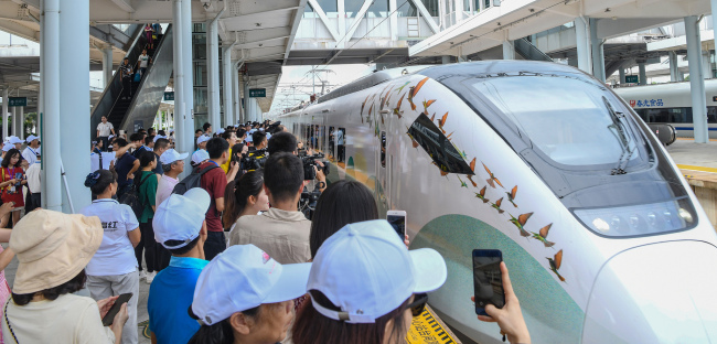 "A high-speed suburban train can accommodate a maximum of 756 passengers and allows quick boarding at full capacity," said Sun Fang, deputy mayor of Haikou.