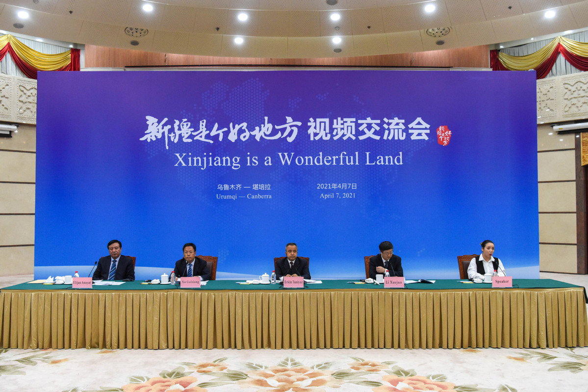 Co-hosted by the Chinese embassy in Australia and regional government, the video conference, "Xinjiang is a Good Place", aims to showcase the achievements of Xinjiang and refute rumors on Xinjiang cooked up by Western anti-China forces.