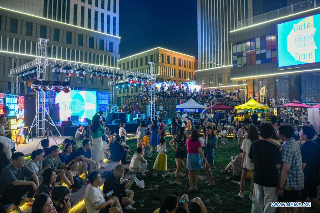People enjoy a drinking carnival in Xiqing district of North China's Tianjin, July 10, 2021. [Photo/Xinhua]