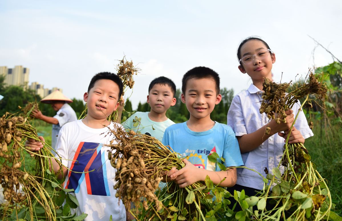 Children help with farm work in Hefei, East China's Anhui province, on Aug 18, 2021. [Photo/IC]