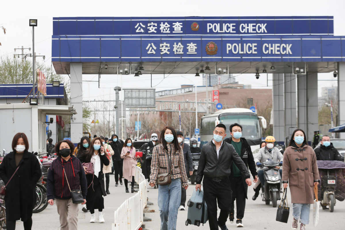 Inter-provincial commuters at the Baimiao North general checkpoint in Beijing on April 6, 2022. [Wu Xiaohui / China Daily]