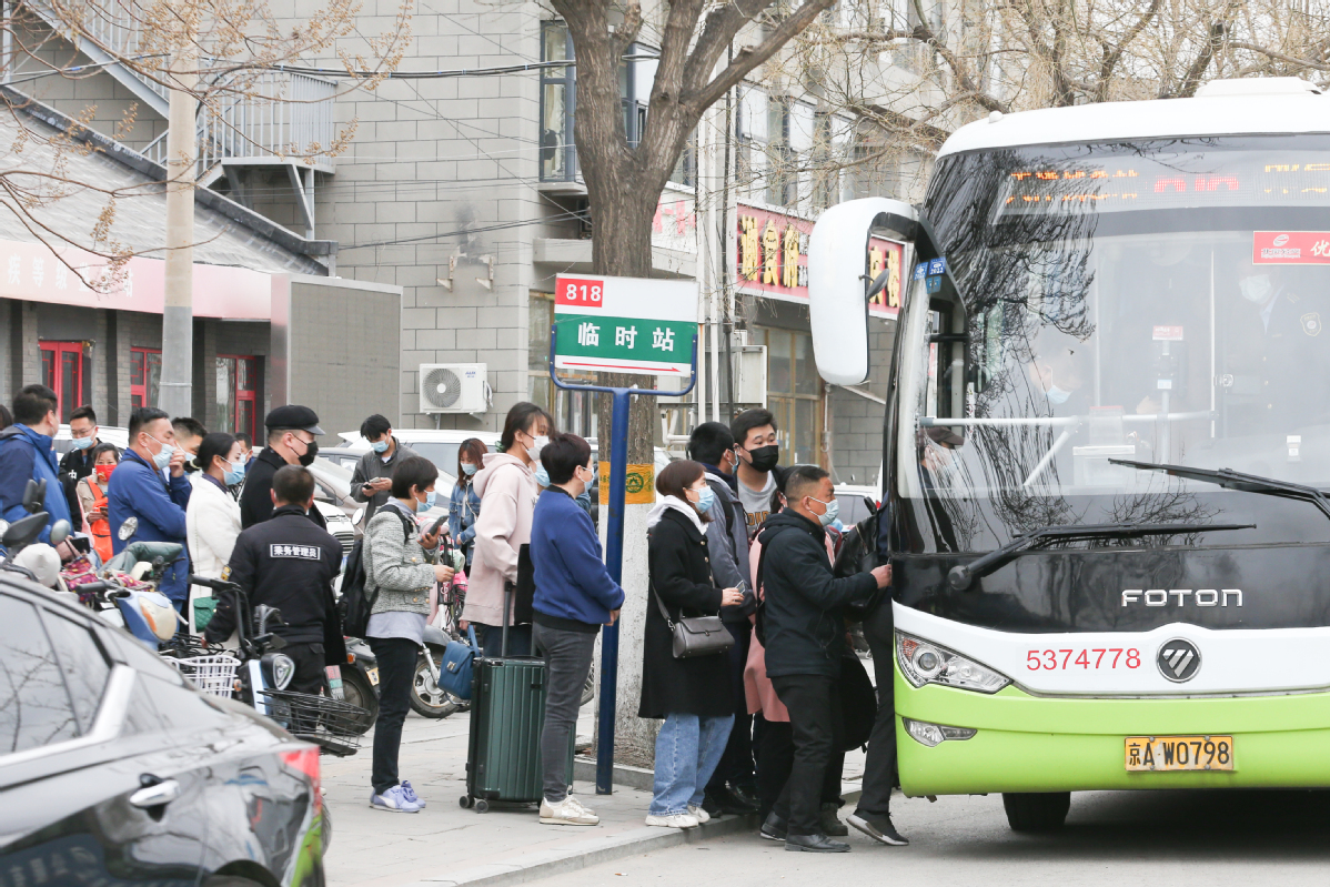 Inter-provincial commuters at the Baimiao North general checkpoint prepare to head to Beijing's urban area. [Wu Xiaohui / China Daily]