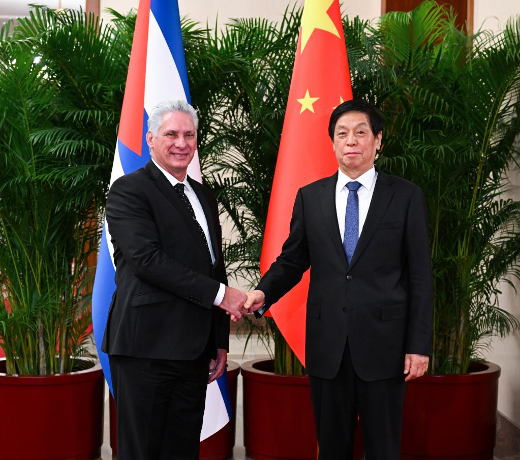BEIJING -- China's top legislator Li Zhanshu met with Miguel Diaz-Canel Bermudez, first secretary of the Central Committee of the Communist Party of Cuba and Cuban president, on Friday.