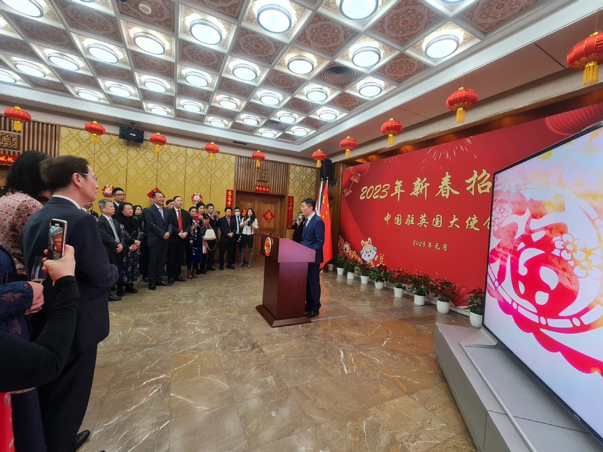 The reception in London opened with a short video highlighting China's economic and social achievements and foreign exchanges in the past decade before Ambassador Zheng Zeguang's Chinese Lunar New Year speech.