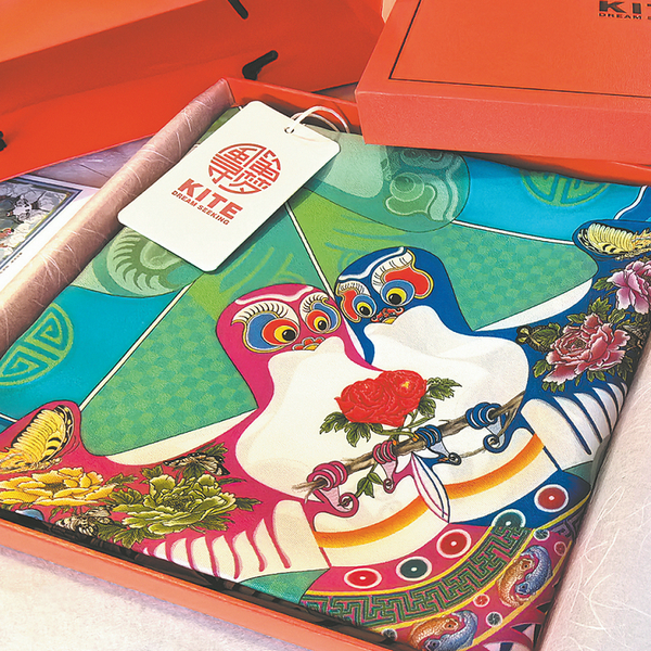 Scarves featuring kite patterns are one of the innovative efforts by Miao Bogang's team to promote traditional "Cao's kites" in Beijing. CHINA DAILY