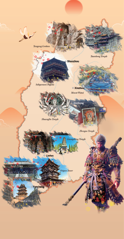 Reaching the popular destinations in Shanxi province requires approximately three hours by high-speed train from Beijing to Taiyuan, the provincial capital; two hours to Datong; and four hours to Pingyao Ancient City.