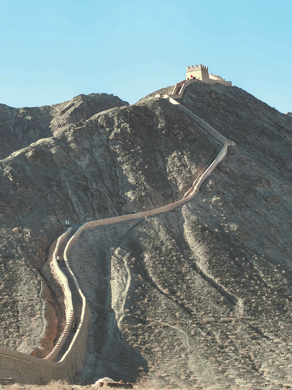 Located 160 km southeast of Yumen Pass, Jiayu Pass marks the western end of the Ming Great Wall. Nearly 80 percent of the existing structures, covering more than 33,500 square meters, date back to the Ming Dynasty. These include imposing tower buildings and large stone slabs with deep grooves left by passing carriages.