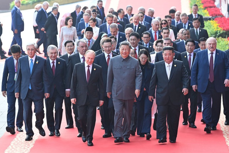 General Secretary of the Communist Party of China Central Committee and Chinese President Xi Jinping, accompanied by General Secretary of the Communist Party of Vietnam Central Committee To Lam, attends a wreath laying ceremony at the Ho Chi Minh Mausoleum in Hanoi, Vietnam, April 15, 2025. [Photo/Xinhua]