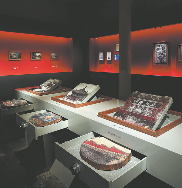 A "cabinet of curiosities" inspired by the crabapple flower-shaped window lattices of the Prince Kung's Palace Museum draws viewers to peer through its patterned openings.