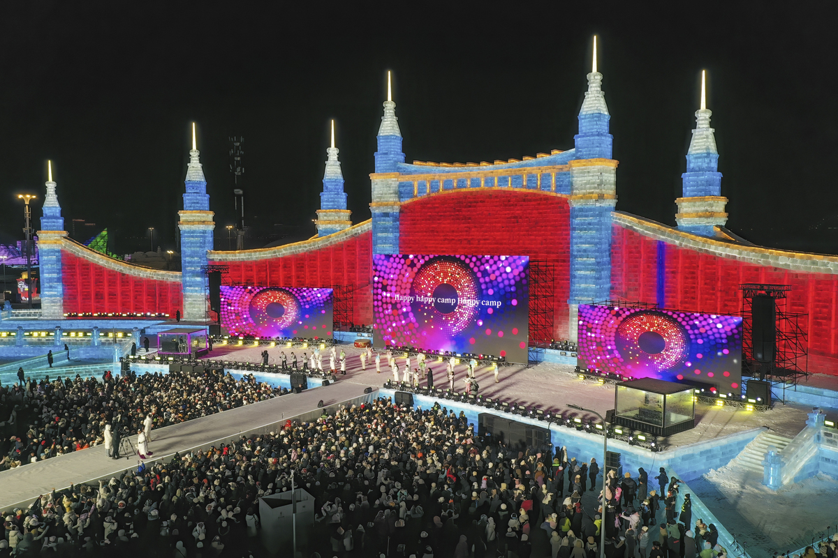 Tourists visit the Harbin Ice-Snow World in Harbin, Northeast China's Heilongjiang province on Wednesday. [Photo by Tian Weitao/China Daily]