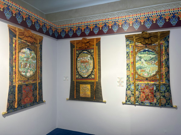 thangka paintings are on show at the Cultural Palace of Nationalities in Beijing celebrating cultural depth and social developments. [Photo by Lin Qi/chinadaily.com.cn]