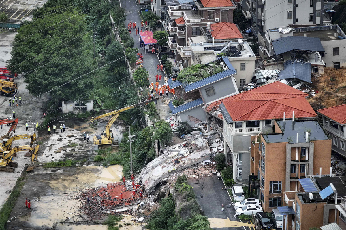 A landslide in Dayuan village in Baiyun district of Guangzhou, Guangdong province, causes severe damage to houses, Aug 6, 2025. [Photo by Cai Jiahong/for chinadaily.com.cn]