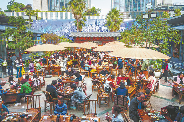 The outdoor area of an old teahouse is teeming with people in Dongguan, Guangdong province, on Jan 1. [Photo Chen Huixian/For China Daily]