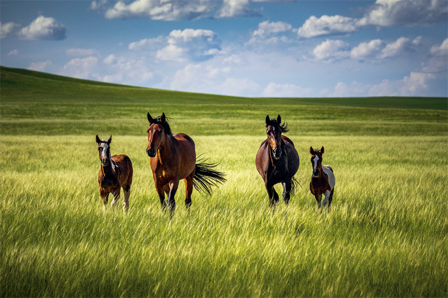 The photo captures mares and foals. [Photo by Zhao Yongsheng/cpanet.org.cn]