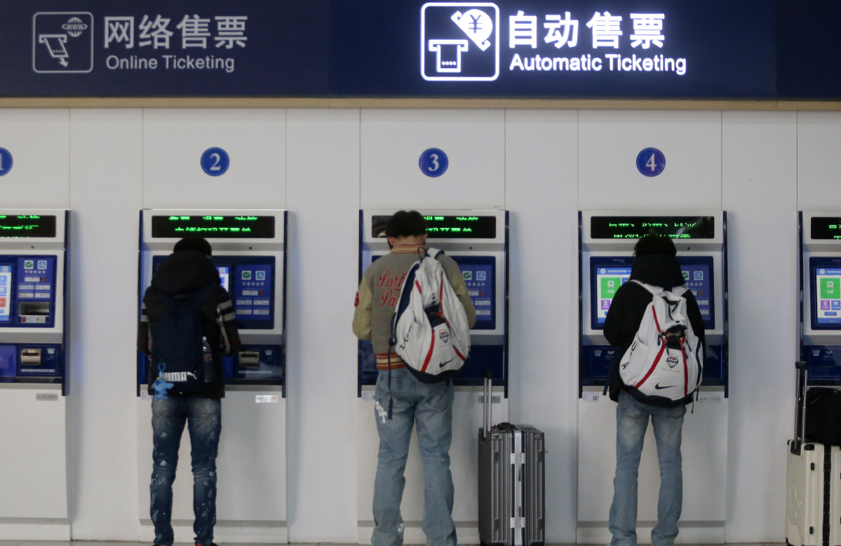 Passengers purchase train tickets at a railway station in Yangzhou, East China's Jiangsu province, Jan 19, 2026. [Photo/Xinhua]