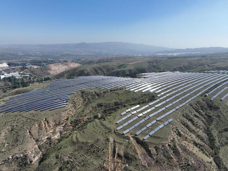 An aerial drone photo taken on May 30, 2024 shows the Datong Coal Mining Subsidence Area National Advanced Technology Photovoltaic Demonstration Base in Datong, North China's Shanxi province. [Photo/Xinhua]