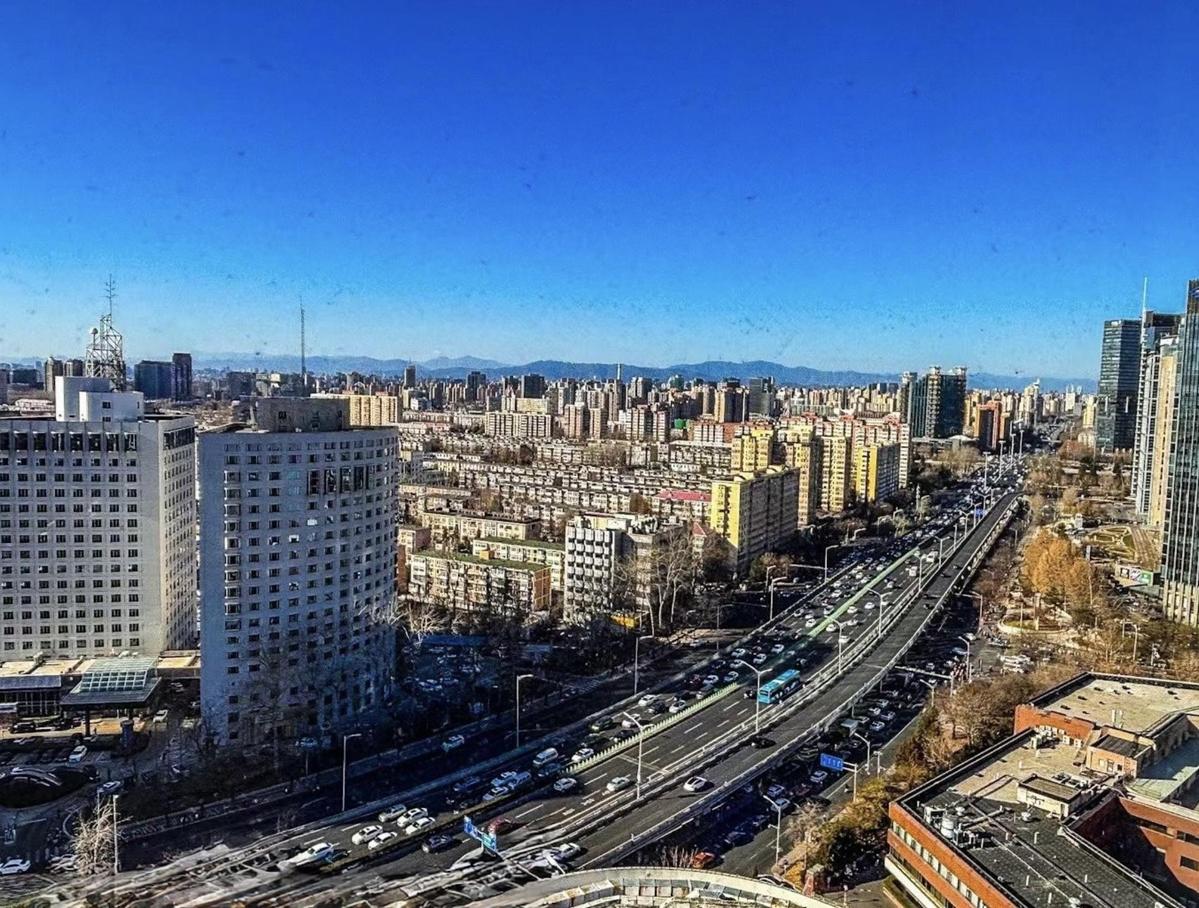 Blue skies of winter in Beijing - East No 3 Ring Road and hills beyond the city [Photo by Bruce Connolly/chinadaily.com.cn]