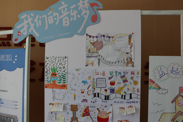 Messages written by students now cover the classroom walls, expressing thanks to their visiting teacher and sharing their musical dreams.